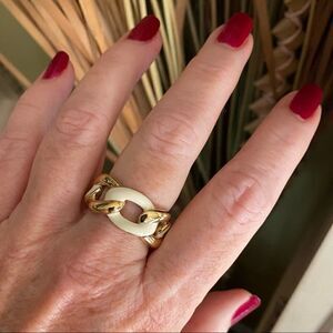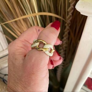 IP Gold(Ion Plating) Stainless Steel Ring with Epoxy in White
