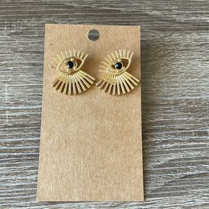 Elegant gold eye design earrings with a striking black center. Perfect for adding a unique touch to any outfit.