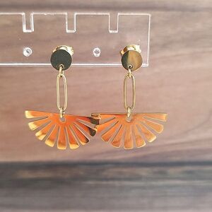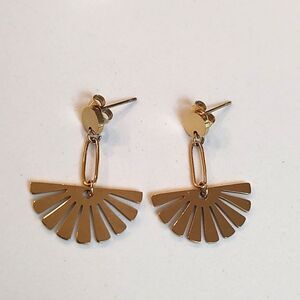 Gold Tone Fan Drop Pierced Earrings. Handmade lightweight, fun earrings with a post backing.