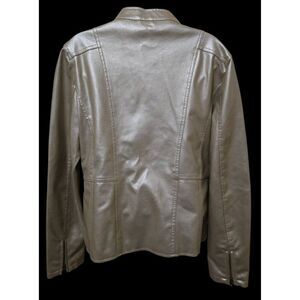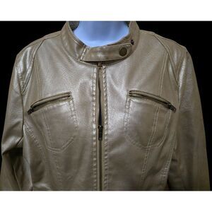 Gold Faux Leather Moto Jacket Zipper Pockets Snap Collar mob wife 80's retro
