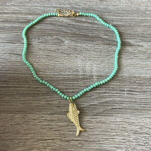 Elegant beaded necklace set featuring gold fish pendants. Perfect for adding a touch of sophistication to any outfit. 18k gold plated waterproof
