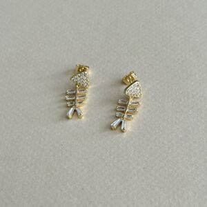 Elegant gold fishbone earrings with sparkling accents. Perfect for adding a touch of glamour to any outfit.