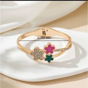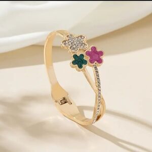 Gold Five Leaf Clover Bangle Bracelet