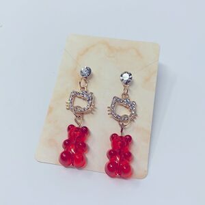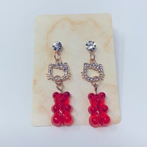 Gold Hello Kitty Red Gummy Bear Drop Earrings