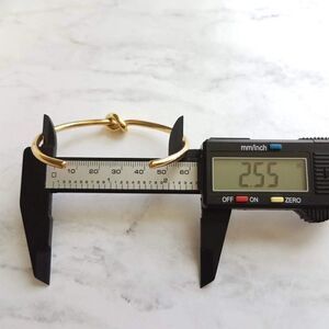 Oval thick wire OPEN cuff / bangle bracelet with a centered "pretzel" knot. A stunning gold-filled bracelet with the most beautiful love knot as the center charm. Worn on its own or layered, this gorgeous bracelet can be worn every day or with a little black dress.
