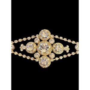 Made from high-quality materials, this Gold/Large Crystal Art Deco Clasp Bracelet combines elegant style with durability. The large gold design and rhinestone details add a touch of glamour, while the 3 diamond shape and secure chain clasp provide both fashion and function. A must-have accessory for any fashion-forward individual.