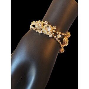 Gold/Large Crystal Art Deco Clasp Bracelet