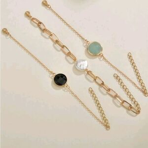 Gold Links 3 Piece Faux Pearl Bracelet