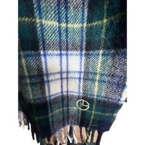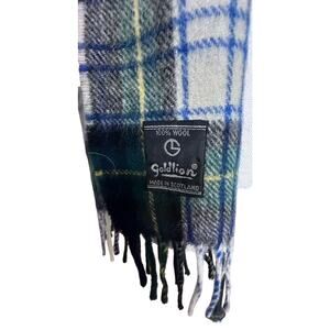 GoldLion 100% Wool Scarf Made In‎ Scotland Green White Plaid Fringe 56" Winter