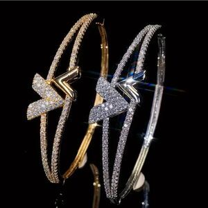 Gold Luxury Diamond Letter V Bangle Bracelet