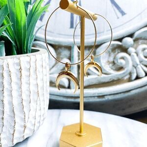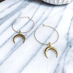 Gold Moon Hoop Earrings Boho Celestial Dangle Drop