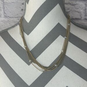 Gold multi-chain necklace One strand with clear beads In excellent condition See photos for measurements