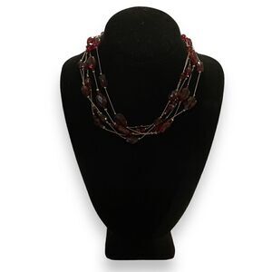Gold Multi-Strand Red Beaded Choker Necklace