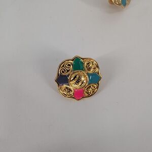 Elegant gold earrings featuring vibrant multicolor accents. Perfect for adding a touch of sophistication to any outfit.