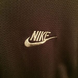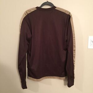 Soft, mesh basketball shirt. Silky feel, but heavier in weight. silky inner material, Long sleeve, with shiny gold stripes. A few pen marks on the sleeve.
