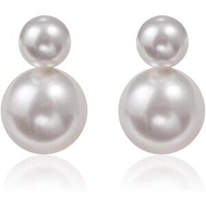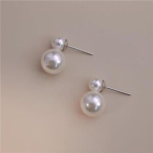 These exquisite earrings feature two perfectly matched white round pearls in a classic drop design, creating a feminine and timeless silhouette that elevates any look.