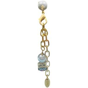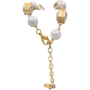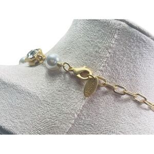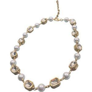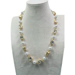 Costume faux pearls necklace with golden metal lantern medallions and Ziconia stones