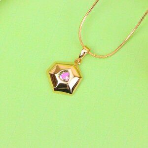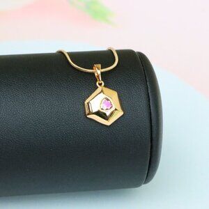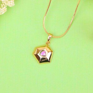"Gold-Plated Hexagon Pendant with Iridescent Rainbow Center Stone, XPPT1750