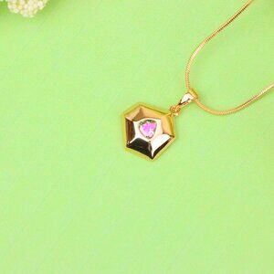 "Gold-Plated Hexagon Pendant with Iridescent Rainbow Center Stone, XPPT1750 ✔ Gold-plated over high-quality brass for lasting shine ✔ Stunning rainbow-hued center stone adds vibrant elegance ✔ Sleek hexagonal shape with a polished modern look ✔ Pendant size: 1.4 x 1.5 cm (approx. 0.55 x 0.59 inches) ✔ Lightweight and perfect for layering or solo wear"