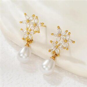 #PearlEarrings #GoldPlatedJewelry #CZJewelry #GiftForHer #ElegantStyle #TimelessDesign #WeddingAccessories #HypoallergenicEarrings #EverydayChic #BridalJewelry