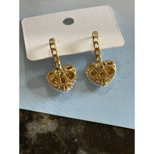 Gold-Plated Pearly Heart Hoop Earrings With Elegant Design Bridal Going Out NWT