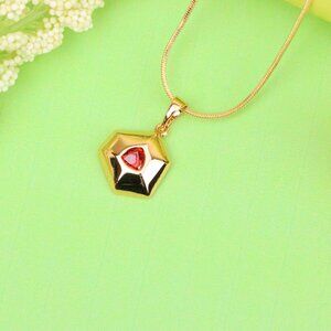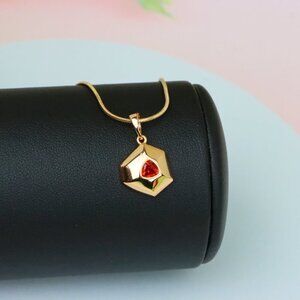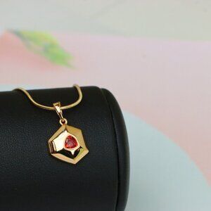 "Gold-Plated Red Stone Pendant in Geometric Hexagon Design, XPPT1751