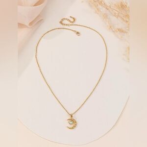 Gold Plated Stainless Steel Moon & Star Cresent Pendant Chain Necklace