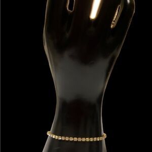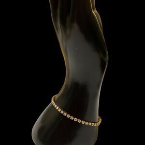 Adorable dainty gold tone rhinestone bracelet with fold over snap clasp. Looks new and is so pretty.