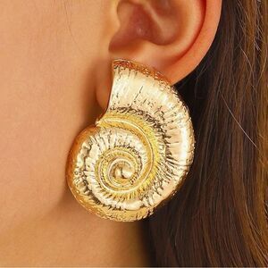 Elegant gold shell earrings perfect for any occasion. Add a touch of sophistication to your outfit.