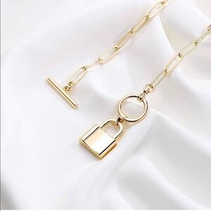 Gold / Silver Padlock Paperclip Chain Toggle Necklace