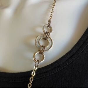 Listing is for a longer gold necklace featuring gold me sparkly circle clusters throughout! Super classy! Features an adjustable chain and lobster claw closure