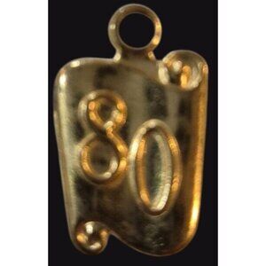 This gold-tone charm features the number 80, ideal for commemorative jewelry or crafting projects. Its design is elegant and timeless.