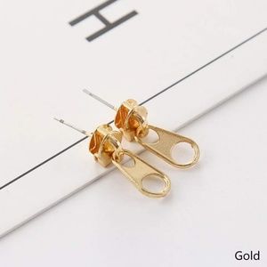 Gold-tone '80s-style punk metal rocker zipper stud earrings. Very cute and versatile. Add a unique flair to any outfit!