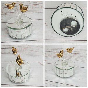 Gold-Tone Bird Figurines on Mirrored Rotating Base | Elegant Decorative Piece