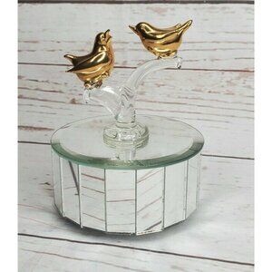 Gold-Tone Bird Figurines on Mirrored Rotating Base: two handcrafted gold-tone birds on a sturdy mirrored rotating base, 5-6 in tall, lightweight for compact display, adds vintage elegance to home or office decor, perfect unique gift for collectors or interior enthusiasts. Wipe with soft dry cloth, store in cool dry place. ,