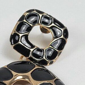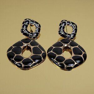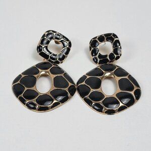 Gold-Tone Black Enamel Drop Earrings 2.5 In Pierced Post Leopard Print Pebble