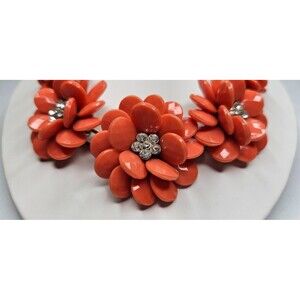 Gold-Tone Chain And Chunky Orange Flowers With Rhinestone Centers Bib Necklace