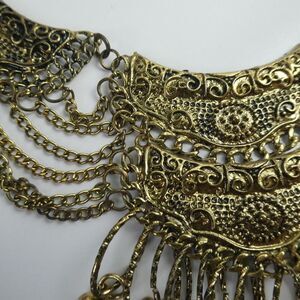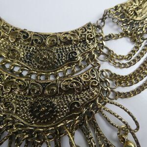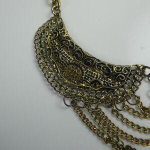 Gold Tone Chunky Bib Statement Necklace Dangle Beaded Filigree Chain MultiStrand