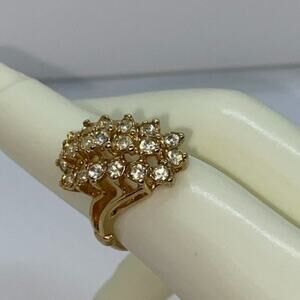 Gold-Tone Clear Rhinestone Large Statement Ring Women's Size 5