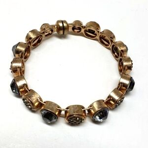 This is a dazzling Women's Gold-tone Bracelet adorned with Sparkling Round Crystals and Rhinestones. It features a convenient Magnetic Lock for easy wearing and removal. The bracelet measures 7 inches in length, making it a charming accessory for various occasions. NWOT