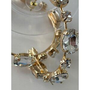 These elegant gold-tone hoop earrings are adorned with sparkling crystal rhinestones, offering a sophisticated and timeless accessory for any wardrobe.
