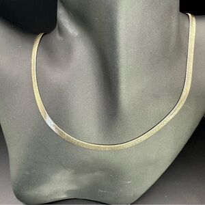 Gold-Tone Flat Herringbone Chain Necklace – Lobster Clasp