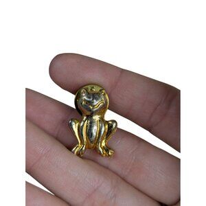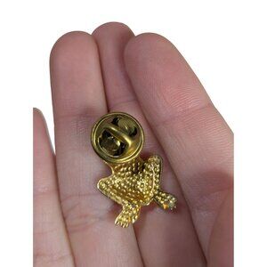 Gold-Tone Frog Lapel Pin With Secure Clasp