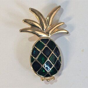 Gold-Tone Green Enamel Pineapple Brooch Pin Friendship Hospitality Tropical