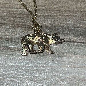 Gold Tone Hand Crafted Bear Pendant On Chain