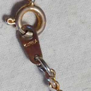 One bracelet is marked Monet, another is marked Victoria's secret. The small gold-tone necklace is marked Korea.