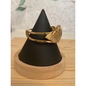 Gold-Tone Leaf & Faux Stone Inlay Hinged Bracelet With Secure Hinged Clasp
