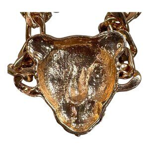 Gold-Tone Leopard Head Statement Bracelet Rhinestones & Black Enamel Detailing