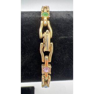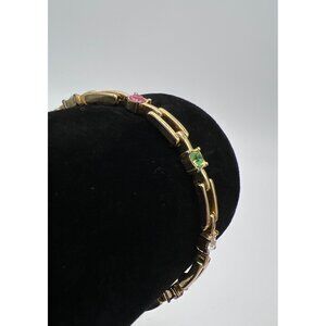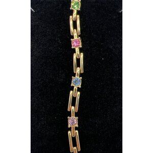 Gold-Tone Link Bracelet With Multicolor Gemstones & Fold-Over Clasp 7 Inches