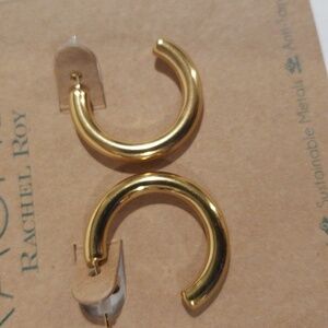 Add a touch of elegance to your look with these RACHEL Rachel Roy gold-tone 1-inch open hoop earrings! Designed with a sleek, minimalist style, these hoops are perfect for everyday wear or pairing with your favorite outfit for a chic, polished look.